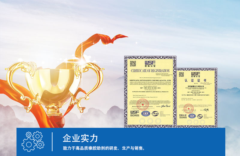 目前公司拥有SUNNYJOINT共30余种产品,包括促进剂、防老剂、硫化剂及其它专用助剂,同时提供充油、造粒及超细等不同形态的产品,广泛应用于轮胎、胶管、胶鞋、乳胶、电缆电线和橡胶杂件的生产,是橡胶加工的必需品。